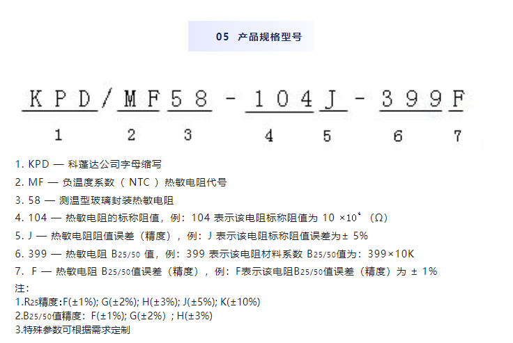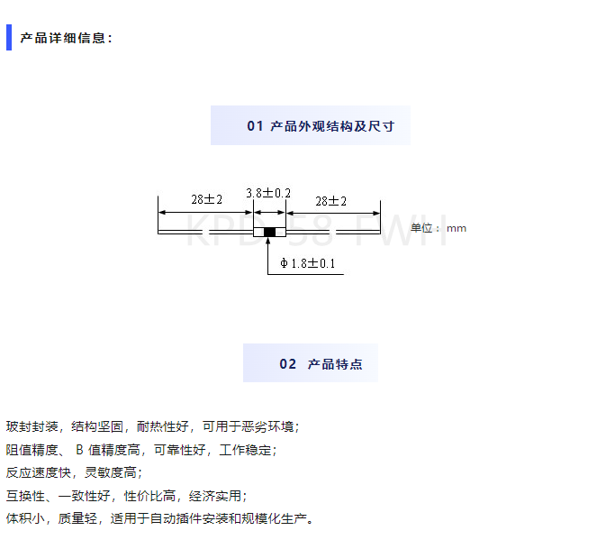 KPD產品系列02—MF58玻封NTC熱敏電阻