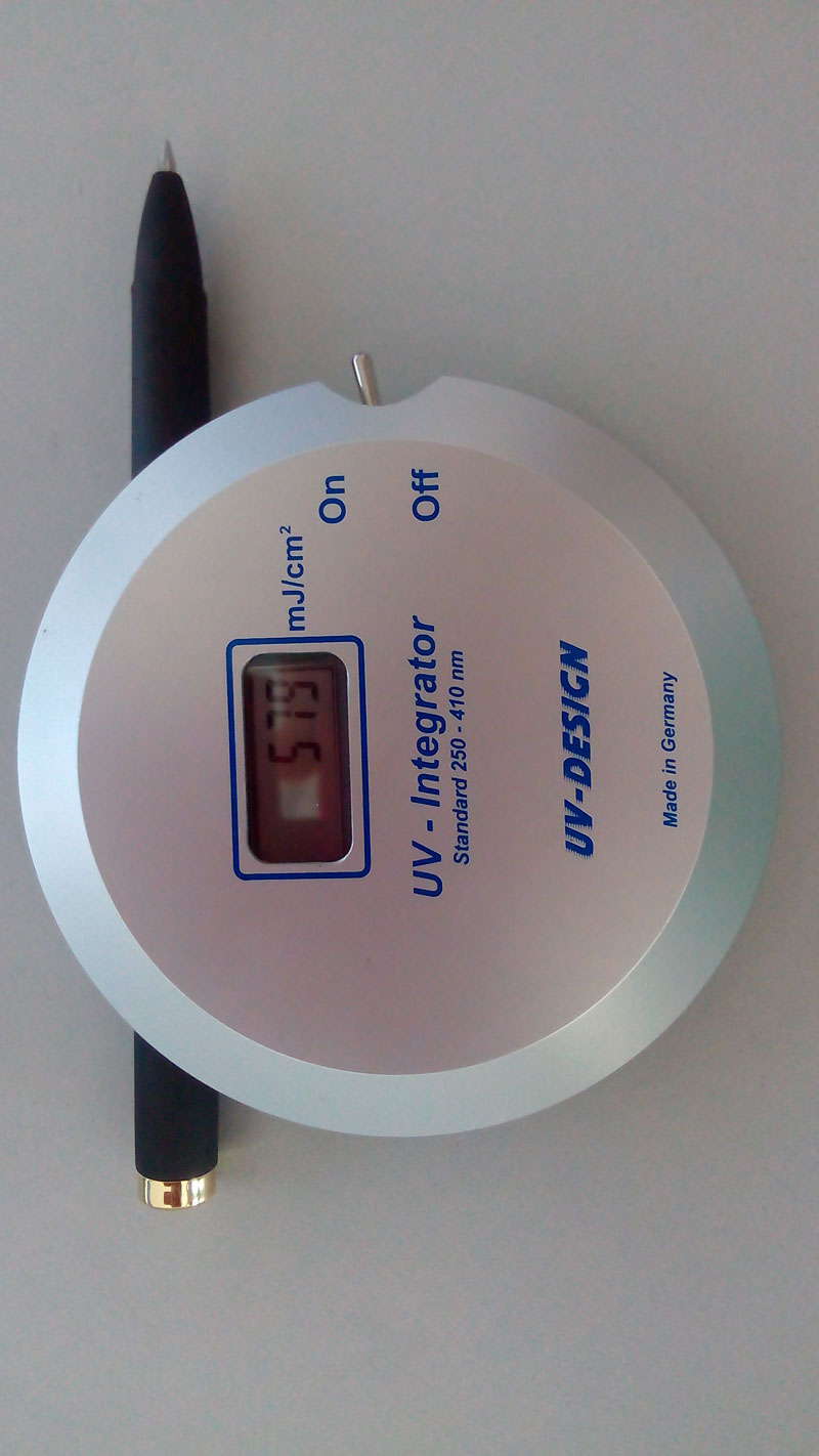c. 直到UV能量計的顯示屏上有測量顯示,例如800毫焦耳/平方厘米。(800mj/cm2)